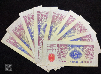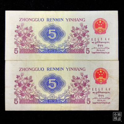 Các thế hệ thứ ba thiết lập của RMB cũ ngũ giác 1972 3 phiên bản 5 góc độ của chính hãng lưu thông của tiền xu cũ 5 cent tờ rơi xu cổ Tiền ghi chú
