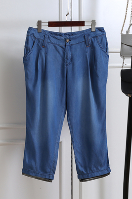 Caisen [Lai] cắt giảm truy cập để loại bỏ quần khâu lụa của phụ nữ ~ khoan nóng là mỏng bảy điểm quần jeans rộng chân quần jean nữ hàng hiệu