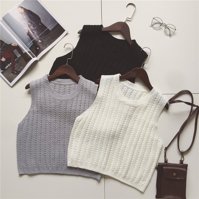 Cao đẳng gió hoang dã mùa xuân và mùa thu màu rắn áo len áo len vest vest clip nữ lỏng mui xe vest áo ngắn áo kiểu nữ đẹp tuổi 40