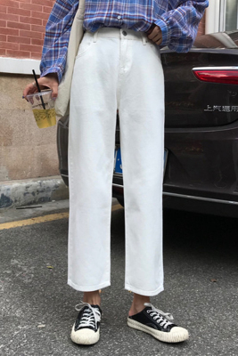 Cao eo lỏng mỏng màu rắn jeans nữ đầu mùa thu mới Hàn Quốc phiên bản của hoang dã chic casual quần thẳng sinh viên thoi trang cong so Quần jean