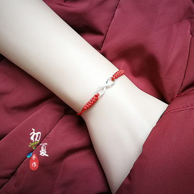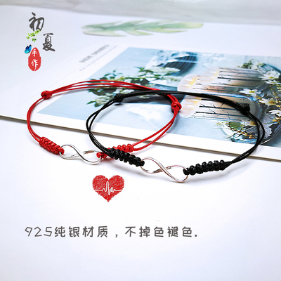 Cặp dây đỏ đôi S925 sterling bạc vòng tay cặp 8 chữ không giới hạn tình yêu nam nữ vòng tay đen năm nay tặng bạn gái vòng bạc cho bé