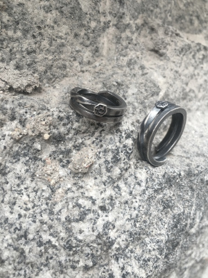 Cặp đôi cá voi bạc sterling ở vòng trong hộp Thiết kế ban đầu Cặp vợ chồng retro nhẫn đuôi nam và nữ nhẫn thủy triều - Nhẫn pnj nhẫn cưới