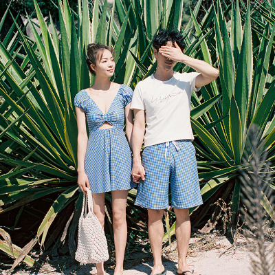 Cặp đôi đồ bơi nữ bikini mới ba mảnh bảo thủ che bụng kỳ nghỉ bên bờ biển quần nam áo tắm nóng bỏng - Vài đồ bơi đồ đi biển cặp đôi Vài đồ bơi