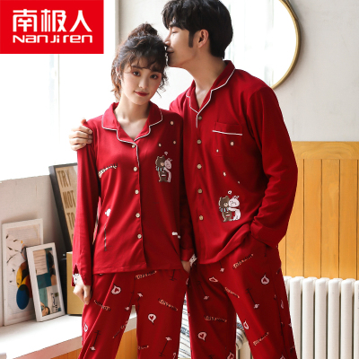 Cặp đôi đồ ngủ mùa xuân và mùa thu ở Nam Cực cotton dài tay cộng với phân bón XL màu đỏ đám cưới nam và nữ phục vụ tại nhà đồ ngủ nam mùa đông