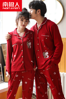 Cặp đôi đồ ngủ mùa xuân và mùa thu ở Nam Cực cotton dài tay cộng với phân bón XL màu đỏ đám cưới nam và nữ phục vụ tại nhà đồ ngủ nam mùa đông Nam giới