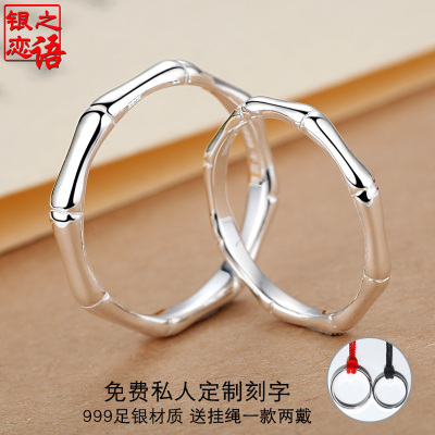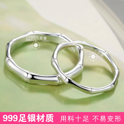 Cặp đôi tre S999 đầy đủ nhẫn bạc một cặp chữ bạc sterling chống lại nhẫn sinh viên ngàn feet nữ nhẫn nam Nhật Bản và Hàn Quốc nhẫn đính hôn