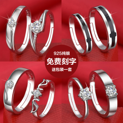 Cặp vợ chồng bạc sterling nhẫn đôi nam nữ trang sức chữ Nhật Bản và Hàn Quốc đơn giản nhẫn đỏ s925 kim cương mở nhẫn cưới nhẫn vàng nữ 18k