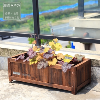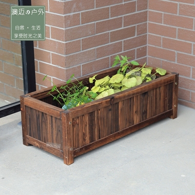 Carbonized chống ăn mòn gỗ hoa hộp Hình chữ nhật ban công chậu hoa bằng gỗ trồng ngoài trời - Cái hộp hộp gỗ đẹp Cái hộp