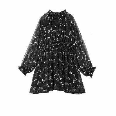 Câu lạc bộ thiết kế 2018 mới dành cho nữ mùa xuân tay dài cổ chữ V váy voan eo A-line váy liền chữ a A-Line Váy