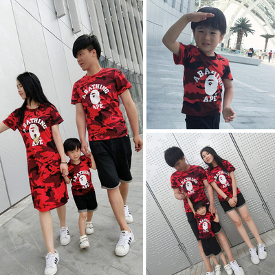Cha mẹ cho con mặc hè 2018 sản phẩm mới mẹ và con trai để cài đặt một gia đình gồm ba mẹ và áo thun nữ dài tay ngụy trang shop quần áo trẻ em đẹp