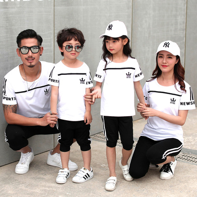 Cha mẹ cho con mặc hè 2019 mới mẹ mặc váy nước ngoài phù hợp với mẹ và con trai rung một gia đình ba nhà bốn gia đình. - Trang phục dành cho cha mẹ và con quần áo gia đình