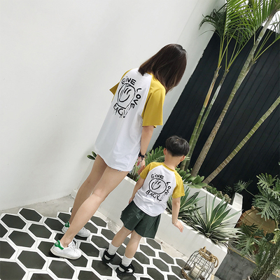 宝 Cha mẹ-con 2019 mới áo thun tay ngắn mẹ và con gái mẹ mặc quần áo mùa hè nghe tiếng bố mẹ-con mặc đồ cotton - Trang phục dành cho cha mẹ và con áo form rộng cho cả gia đình Trang phục dành cho cha mẹ và con