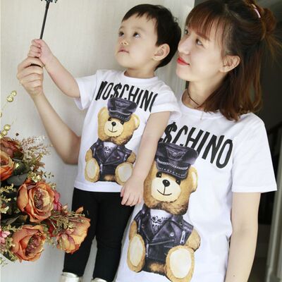 Cha mẹ mặc áo thun ngắn tay 2019 hè mới gia đình ba con gấu bông in hình áo thun mẹ và con thủy triều - Trang phục dành cho cha mẹ và con bộ pijama cho nhà 4 người