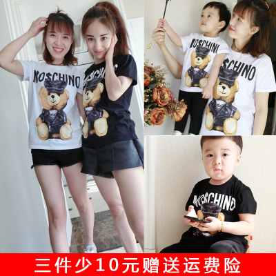 Cha mẹ mặc áo thun ngắn tay 2019 hè mới gia đình ba con gấu bông in hình áo thun mẹ và con thủy triều - Trang phục dành cho cha mẹ và con bộ pijama cho nhà 4 người Trang phục dành cho cha mẹ và con