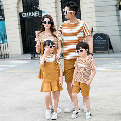 Cha mẹ mặc con mùa hè 2019 mới gia đình ba người bốn gia đình đầy đủ mẹ và mẹ mặc mẹ và con gái dây đeo phù hợp với váy - Trang phục dành cho cha mẹ và con áo thun đẹp cho cả nhà Trang phục dành cho cha mẹ và con