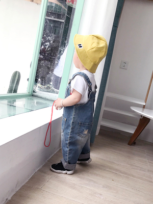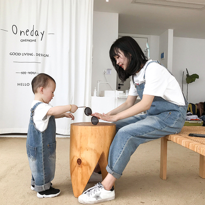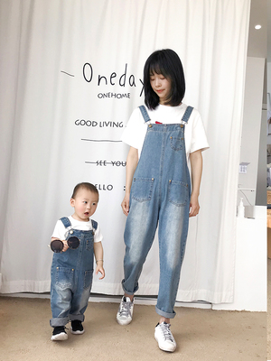 Cha mẹ mặc con mùa xuân mới lưới denim đỏ bib mẹ và mẹ mẹ tải nước ngoài không khí lỏng lẻo quần bé trai thủy triều - Trang phục dành cho cha mẹ và con váy trẻ em