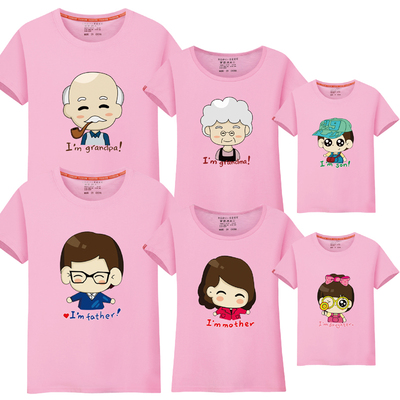 Cha mẹ ông bà mùa hè ba thế hệ của một gia đình năm sáu gia đình nhà đầy đủ áo thun cotton ngắn tay váy trẻ em hàn quốc Trang phục dành cho cha mẹ và con