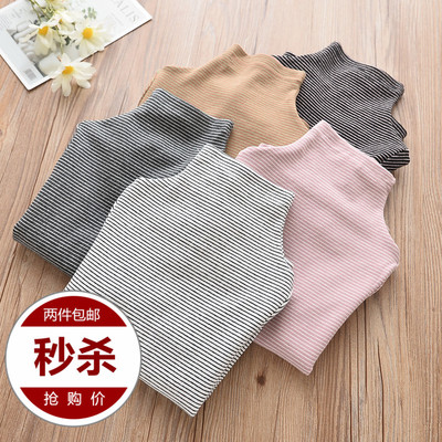 Cha mẹ và con gái Áo sơ mi cổ giữa mùa thu và mùa đông Trẻ em mới mặc áo phông dài tay 5 sọc trẻ em quần áo gia đình 4 người
