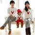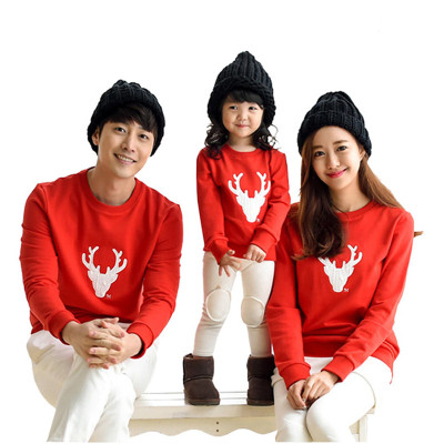 Cha mẹ và con mùa đông 2019 màu đỏ một gia đình ba bốn năm mới Trung Quốc mẫu giáo rung động cộng với áo len đỏ nhung đồng phục sành điệu cho cả nhà Trang phục dành cho cha mẹ và con