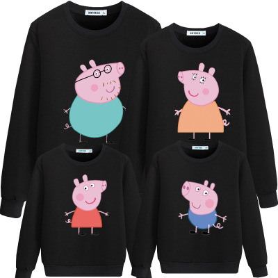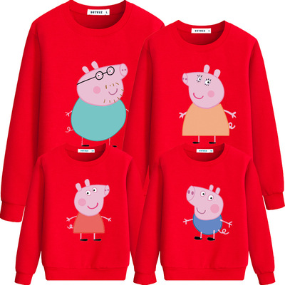 Cha mẹ và trẻ em mùa thu và mùa đông mới bông dài tay lợn Peggy cộng với áo len dày nhung đỏ dịch vụ lớp mẫu giáo màu vàng cam quần áo trẻ em nam Trang phục dành cho cha mẹ và con