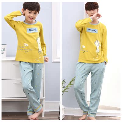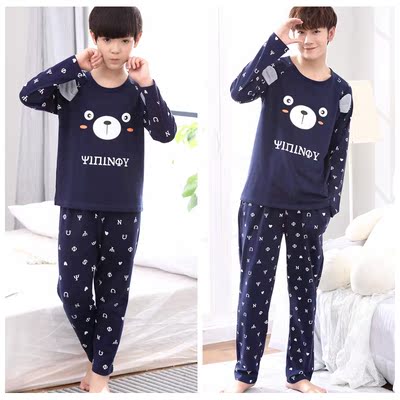 Cha và con trai mặc đồ ngủ nam dài tay học sinh trung học cơ sở 12-15 tuổi con lớn 13-18 trẻ em trai teen mùa xuân và mùa thu pijama nam Nam giới