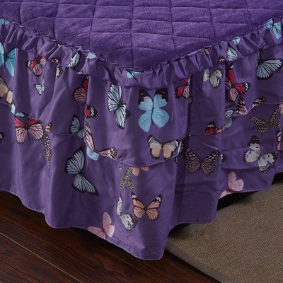 Chăn bông hai lớp ấm áp váy ren giường đơn mảnh cộng với bông dày mùa đông san hô nhung rắn màu trượt giường giường váy