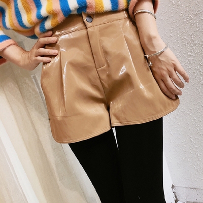 Chân dài trong mùa thu đông, màu sắc rắn, da PU sành điệu, chân rộng, quần short thiết kế thời trang nữ Quần short