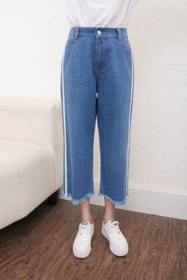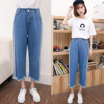 Chất béo mm mùa hè mới Hàn Quốc phiên bản của xl denim chín quần phụ nữ bf lỏng thường sinh viên 200 pounds rộng chân quần quần bò nữ đẹp Quần jean
