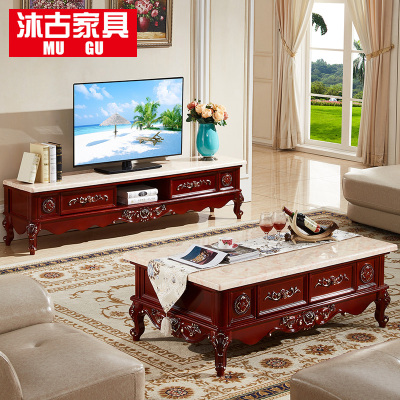 Châu âu gỗ rắn đá cẩm thạch bàn cà phê kết hợp tủ TV sồi khắc căn hộ nhỏ phòng khách bộ đồ nội thất kệ tivi đẹp