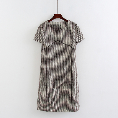 Châu âu và Hoa Kỳ 2018 mùa thu và mùa đông phụ nữ mới của phụ nữ tính khí vòng cổ houndstooth len ngắn tay Một từ ăn mặc váy kẻ caro dáng chữ a A-Line Váy