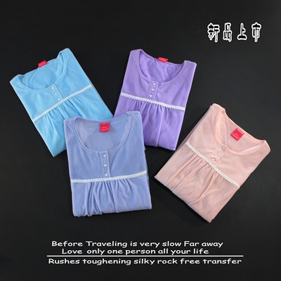 Châu Âu và Hoa Kỳ độc thân phụ nữ mới đơn giản cổ tròn lông cừu thoải mái phần dài áo choàng nhà đồ ngủ sống E101-504 áo choàng bông trung niên Night Robe
