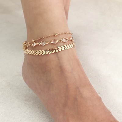 Châu Âu và Hoa Kỳ mùa hè phổ biến nhiều chuỗi vòng chân phụ nữ đồng sequin pha lê một chuỗi tiếp xúc với mắt cá chân trang sức vòng đeo chân nữ