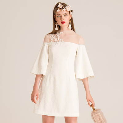 Châu Âu và Hoa Kỳ mùa thu mới của phụ nữ hoa loa kèn trắng tay áo khâu thêu lưới phối cảnh váy Một từ váy - A-Line Váy thời trang nữ