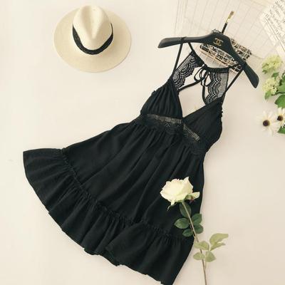 Châu âu và Mỹ gió ins nữ thần kỳ nghỉ bãi biển ảnh váy V-Cổ treo cổ sexy backless ren xù dress nữ đầm sơ mi thắt eo