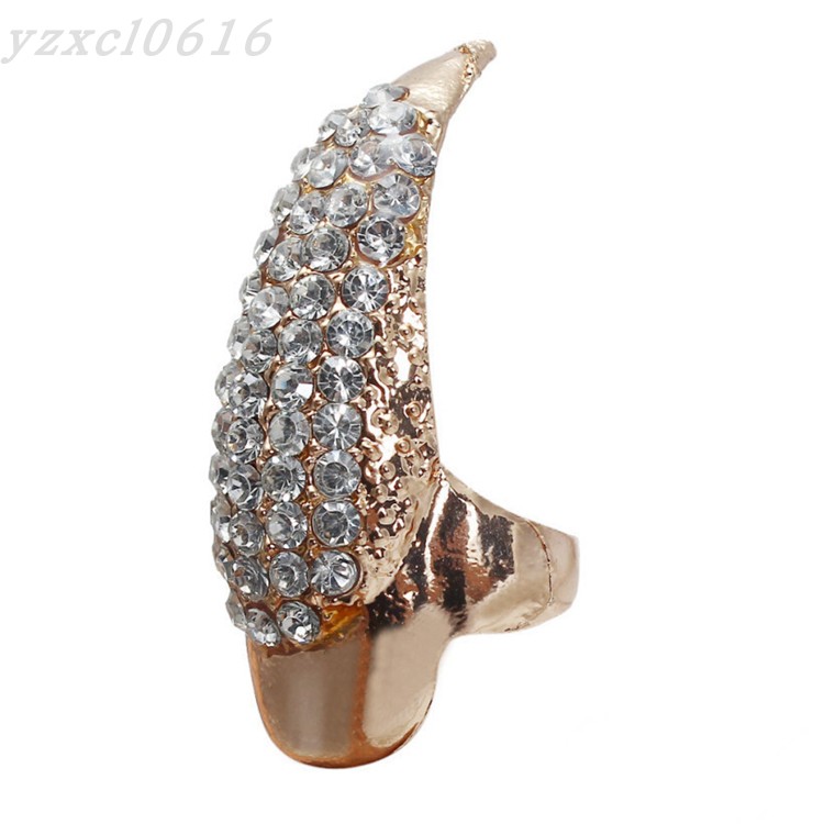 Châu Âu và Mỹ móng tay phiên bản Hàn Quốc của thủy triều cá tính trang sức nhẫn kim cương rhinestone nhẫn móng tay che giáp đầy đủ nhẫn vàng 24k
