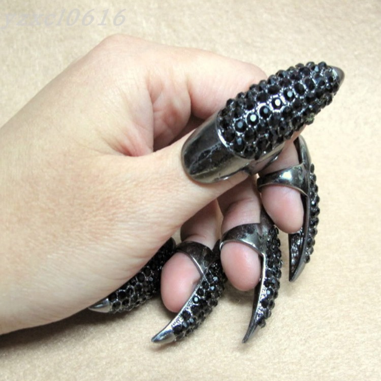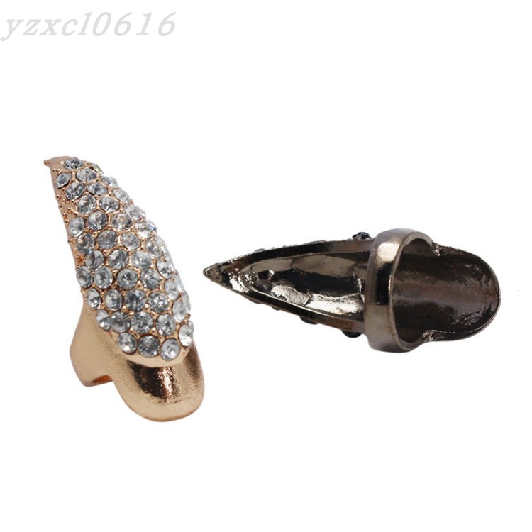 Châu Âu và Mỹ móng tay phiên bản Hàn Quốc của thủy triều cá tính trang sức nhẫn kim cương rhinestone nhẫn móng tay che giáp đầy đủ nhẫn vàng 24k Nhẫn