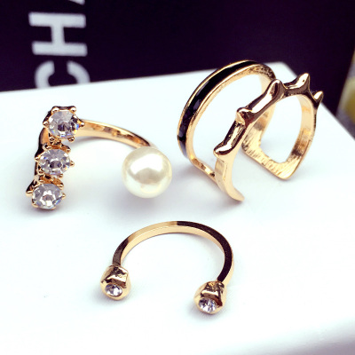 Châu Âu và Mỹ phóng đại phong cách punk đinh tán vòng ngọc trai pha lê Trang sức Hàn Quốc thời trang hoang dã mở ngón trỏ nhẫn nữ nhẫn kim cương tự nhiên