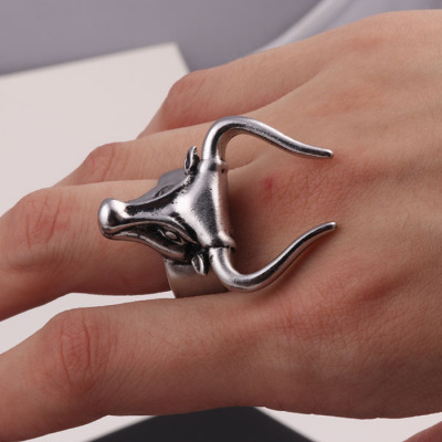 Châu Âu và Mỹ titan thép cung hoàng đạo đầu vòng Punk gió độc đoán thép không gỉ mở vòng Unisex chữ nhẫn cưới cartier Nhẫn