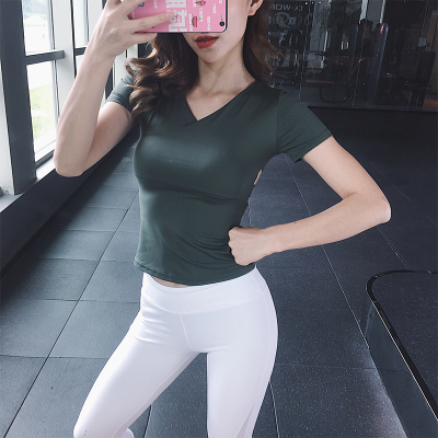 Chạy Kaka sexy V-Cổ vẻ đẹp trở lại chéo thể thao ngắn tay phụ nữ nhanh khô chạy thể dục t-shirt nửa tay yoga quần áo áo thun tay dài nam the thao
