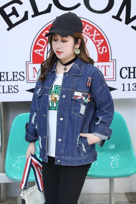 Cher của nhà 2018 mùa thu mới chất béo mm cộng với phân bón XL nữ Châu Âu và Hoa Kỳ lỏng mỏng denim jacket jacket áo kiểu nữ đẹp tuổi 50