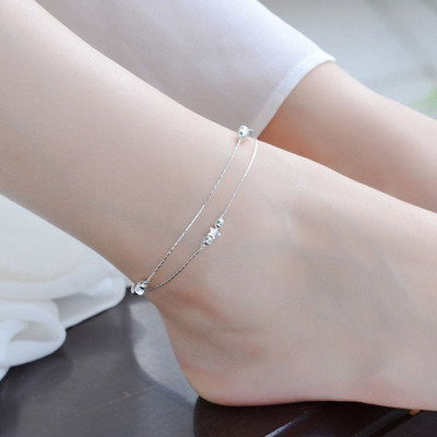 Chuyển hạt sao bạc vòng chân nữ chuông ngày sinh viên Hàn Quốc đơn giản Sen retro phiên bản Hàn Quốc cá tính hoang dã vòng chân titin ko gỉ Vòng chân