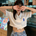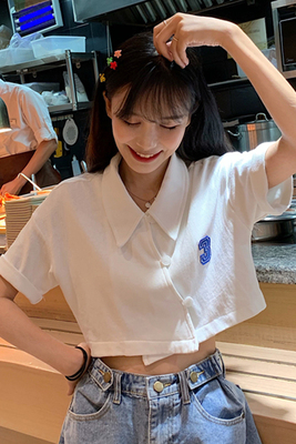 Cổ áo gợi cảm quần áo polo phụ nữ ve áo lỏng lẻo đoạn ngắn rốn áo sơ mi ngắn eo cao hip hop áo thun - Áo phông áo polo nữ form rộng