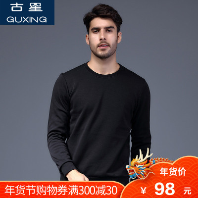 Cổ áo mùa thu đông và áo len thể thao nam cộng với nhung dày cổ tròn áo thun giản dị dài tay nhẹ áo khoác rộng áo sweater form rộng