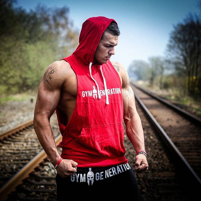 Cơ bắp Tay Áo Vest Cotton Thoáng Khí Nam Trùm Đầu Cao Cổ Thể Thao Vest Thể Thao Thịt Cap Casual Vest Đơn áo khoác tập gym nam