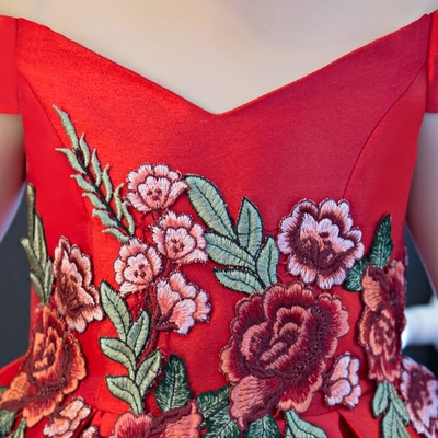 Cô gái ăn mặc công chúa váy đỏ mùa hè lớn trẻ em váy cưới pettiskirt hoa cô gái catwalk trang phục piano trailing váy trẻ em 11 tuổi Váy trẻ em