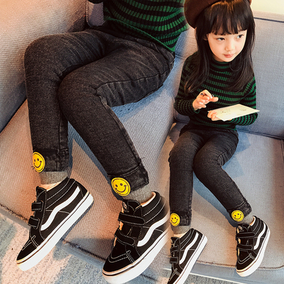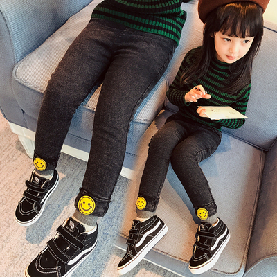 Cô gái cộng với quần jean nhung 2018 mùa đông mới Quần trẻ em mùa thu đông của Hàn Quốc mặc quần ống dày quần sịp bé trai