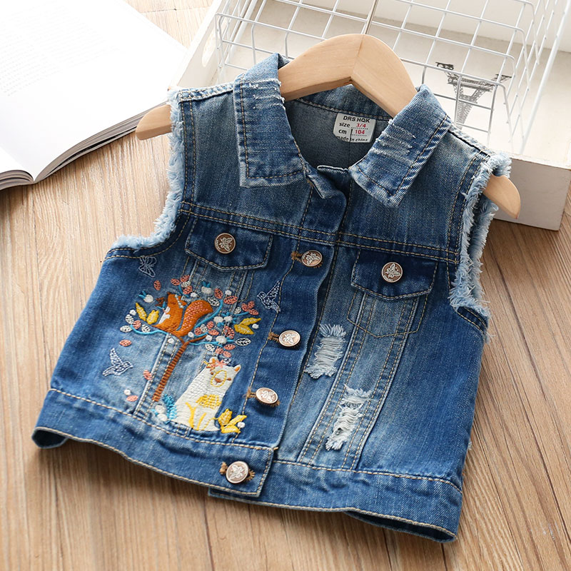 Cô gái mặc vest cao bồi trẻ em thêu retro thủy triều 2019 mới mùa xuân và mùa thu cho bé vest bên ngoài - Áo ghi lê áo len nam thu đông bé trai Áo ghi lê