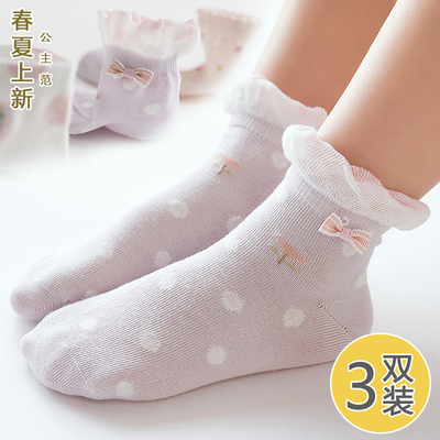 Cô gái mùa hè vớ ren mỏng trẻ em cotton lỏng miệng cung bé công chúa ren trắng vớ - Vớ vớ chống trơn trượt cho bé