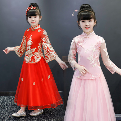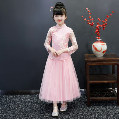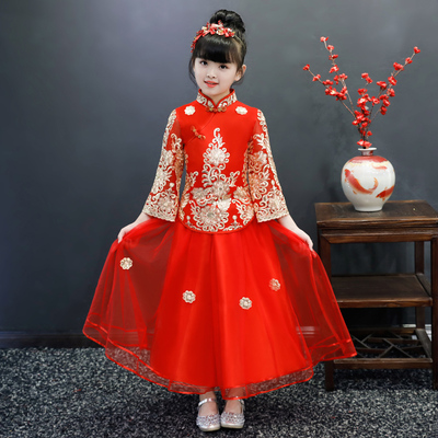 Cô gái sườn xám sinh nhật Quần áo năm mới cộng với cotton Hanfu trẻ em Tang phù hợp với phong cách Trung Quốc trang phục trẻ em mùa thu đông quần áo trẻ em