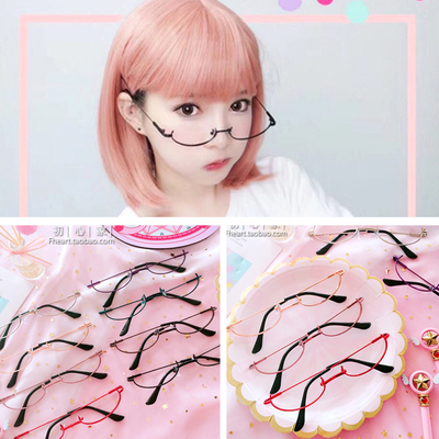 Cô gái trái tim học sinh lớp hai mềm mại Nhật Bản có thể tháo rời ống kính nửa khung kính cos chụp đường hoạt hình xung quanh kính chống tia uv Kính đeo mắt kính